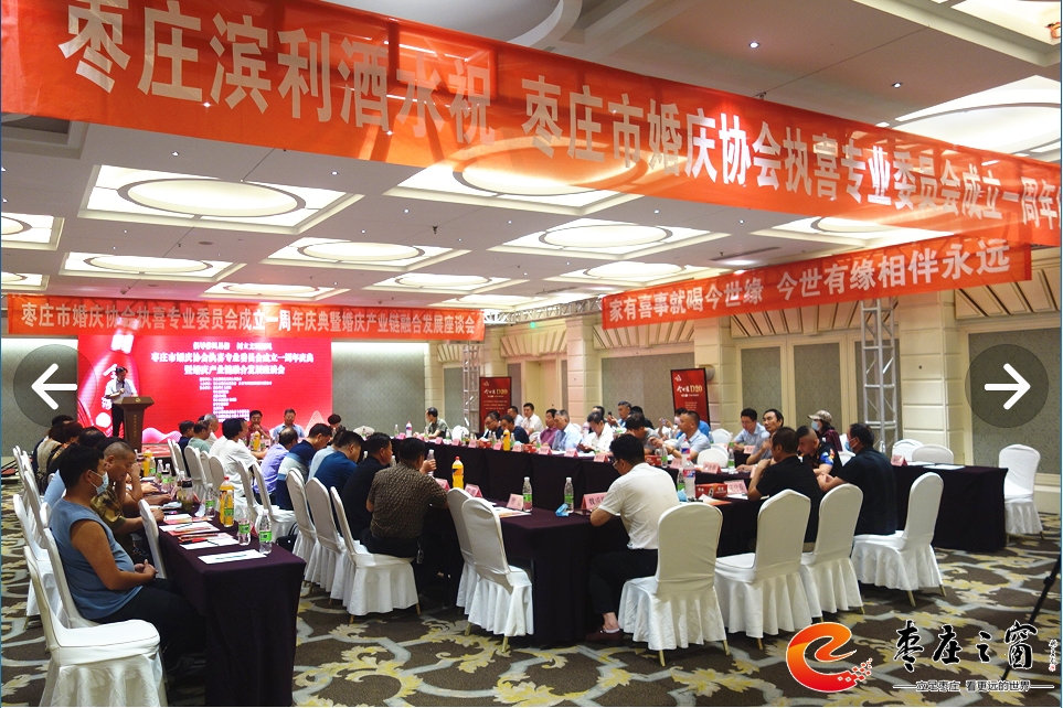 為貫徹落實上級部門提出的倡導(dǎo)文明、喜事新辦,移風(fēng)易俗,減少陋習(xí),新事簡辦的工作方針,建立健全婚禮執(zhí)喜的有序化,更好的構(gòu)建和諧社會,為“工業(yè)強(qiáng)市、產(chǎn)業(yè)興市”做貢獻(xiàn)。7月12日下午,由棗莊市婚慶慶典協(xié)會、江蘇今世緣酒業(yè)銷售有限公司主辦的棗莊市婚慶慶典協(xié)會執(zhí)喜專業(yè)委員會成立一周年慶典暨婚慶產(chǎn)業(yè)鏈融合發(fā)展座談會在舜和棗莊大酒店舉辦,執(zhí)喜專委會成員、專委會顧問團(tuán)成員、棗莊婚慶界、餐飲界、商業(yè)界代表60余人參加活動。
